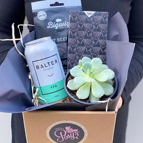 The Brew Posy is a plant, a Furphy Beer, Bigwig Jerky Co jerky, and a BSKT Chocolate all perfectly arranged in a gift box. Enjoy the beverage now and keep the blooms fresher for longer with our top care tips!