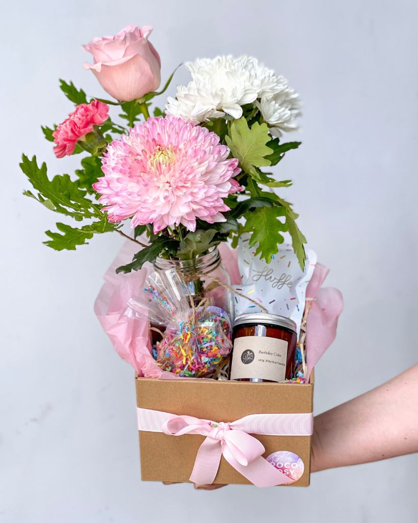These custom corporate gifts can be packaged in little hamper boxes with ribbon or cute Poco Posy gift bags. This choice is yours.